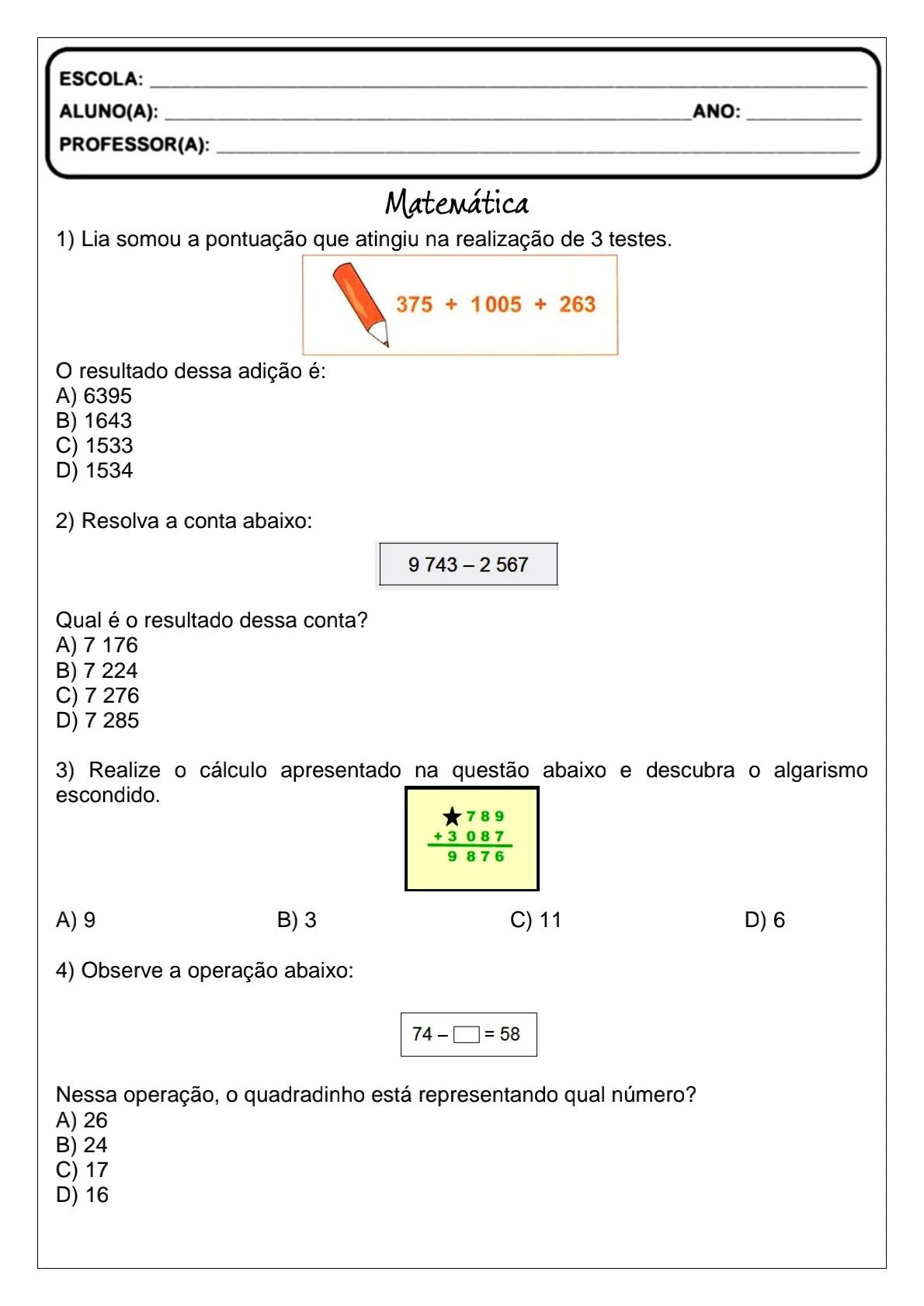 Atividade para trabalhar desafios matemáticos...