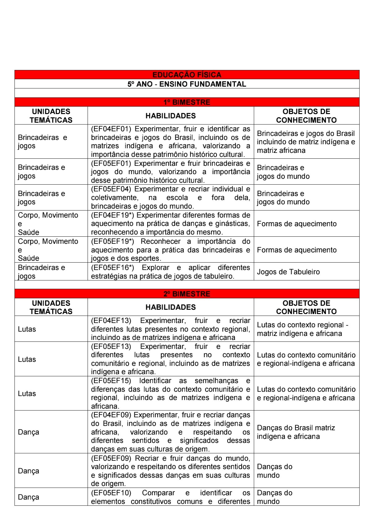 👍Plano anual: Educação Física - 1º ao 5º ano