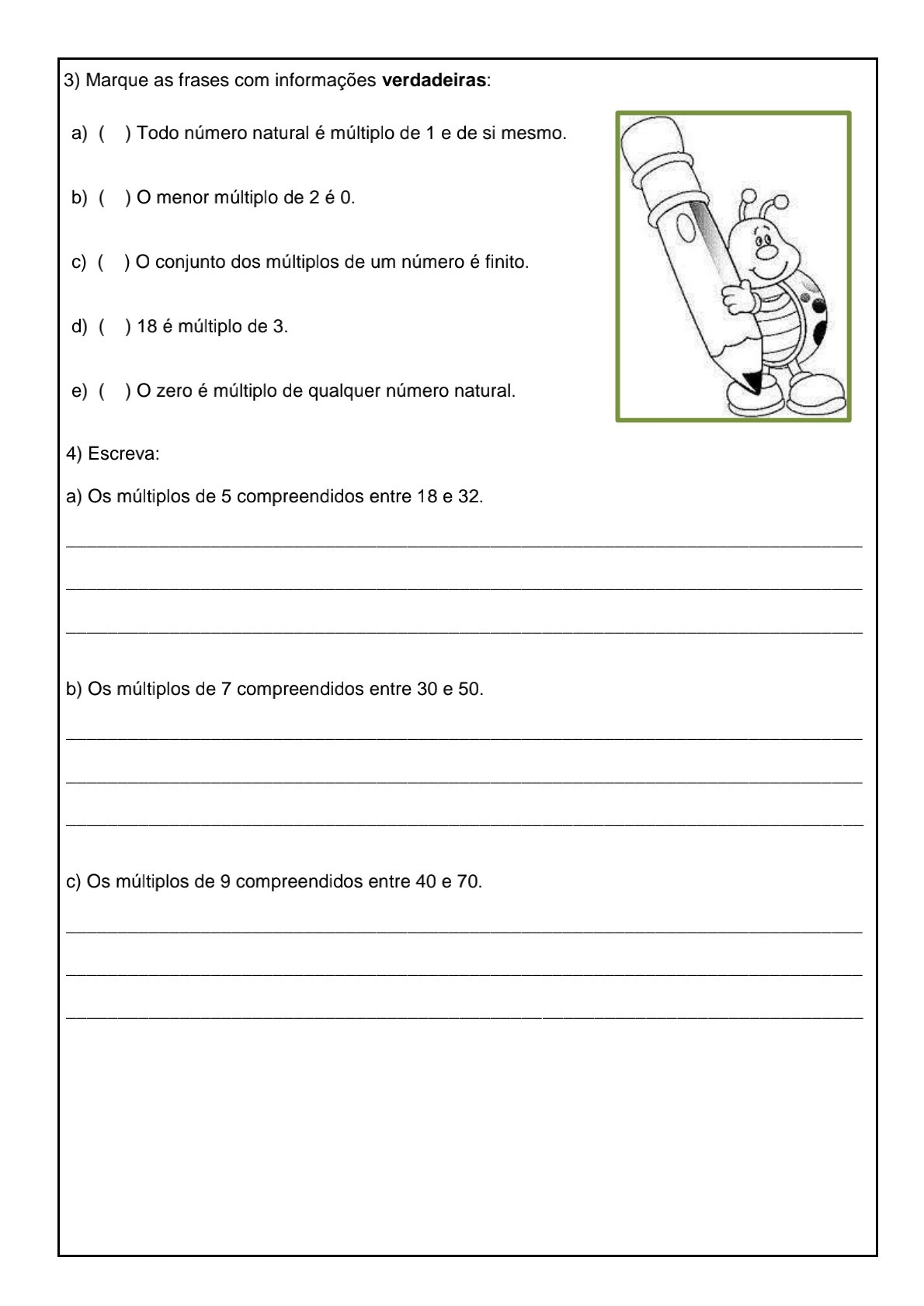 Atividade de matemática para trabalhar os múltiplos de um número natural...