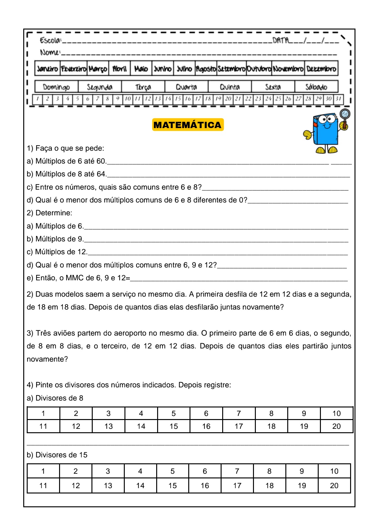 Atividade de matemática para trabalhar múltiplos e divisores...