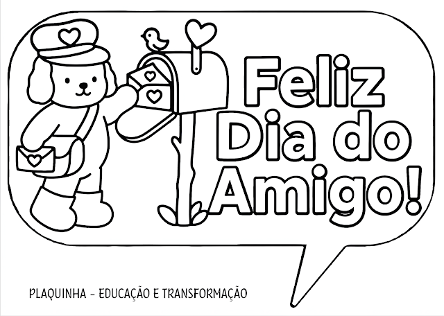 Kit para celebrar o "O Dia do Amigo" (versão para colorir) com o Bobbie Goods contendo coroa, viseira, diploma, marcador de página, varinha mágica, cartão/mensagem, etiquetas, caixas, aba para embalagem e pirulito, medalha, sacola, plaquinha, bandeirola, moldura para selfie, desenho para colorir...