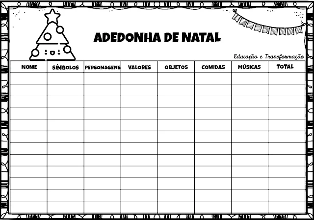 Fichas para adedonha natalina, na versão para colorir...